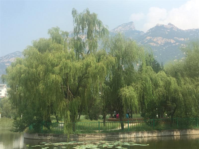 泰山廣場西側有一公園名曰御碑公園, 公園依山而建,園內淺丘起伏,林木蔥郁,環(huán)境幽靜,根據(jù)高差,分為上下兩處水景,一棵棵柳樹倒映在水中,構成了一幅美妙的畫卷。